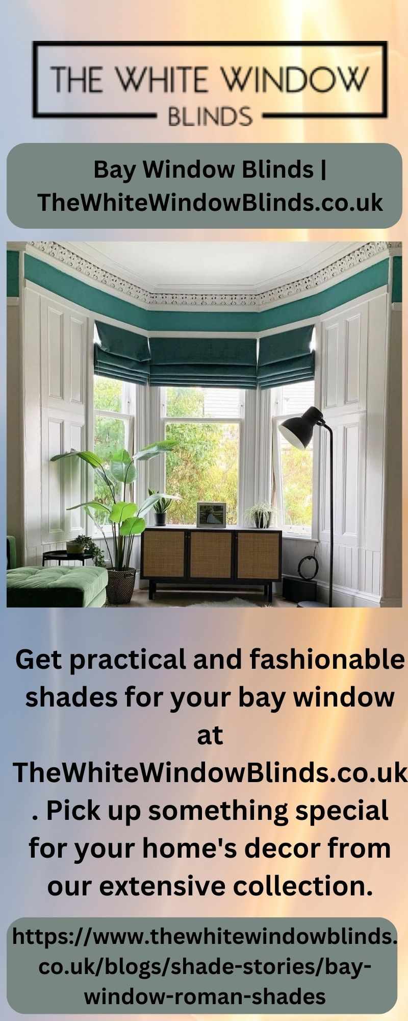 Get practical and fashionable shades for your bay window at TheWhiteWindowBlinds.co.uk. Pick up something special for your home's decor from our extensive collection.