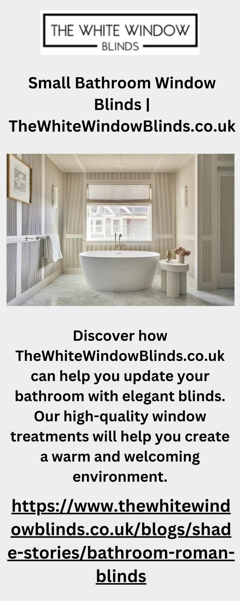 Discover how TheWhiteWindowBlinds.co.uk can help you update your bathroom with elegant blinds. Our high-quality window treatments will help you create a warm and welcoming environment.